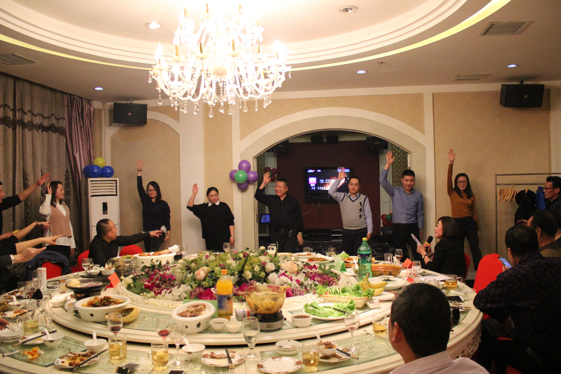 晚間,公司舉辦了“感恩2017·夢想2018”的主題晚宴。嘉寶信人齊聚一堂,觥籌交錯,把酒言歡。席間,各部門為大家獻上了精彩的表演,有歌曲合唱、“三句半”及方言表演等,一致得到大家的歡迎。隨后的抽獎環節將晚宴推向高潮,在這愉快的晚宴上,大家敞開心扉、釋放激情、享受著緣分帶給我們的歡樂,我們凝心聚力,相約來年再創輝煌!