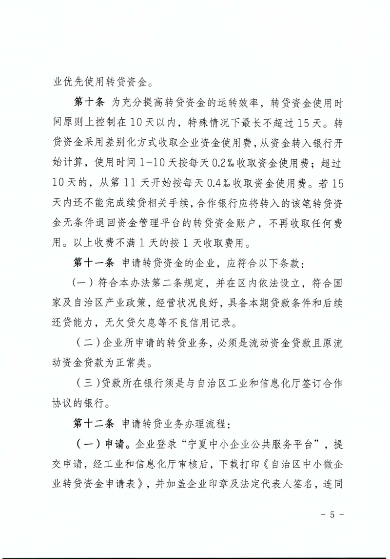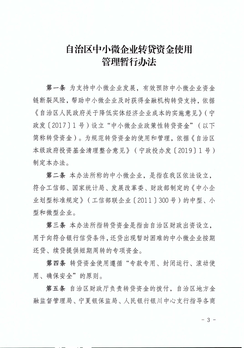 自治區中小微企業轉貸資金使用管理暫行辦法